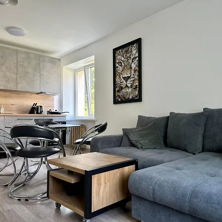 Riga Mezaparks Apartment + Private Parking坐落于维德捷姆郊区,距离里加国际机场大约25分钟的车程. 这间50平方米的公寓享有花园.